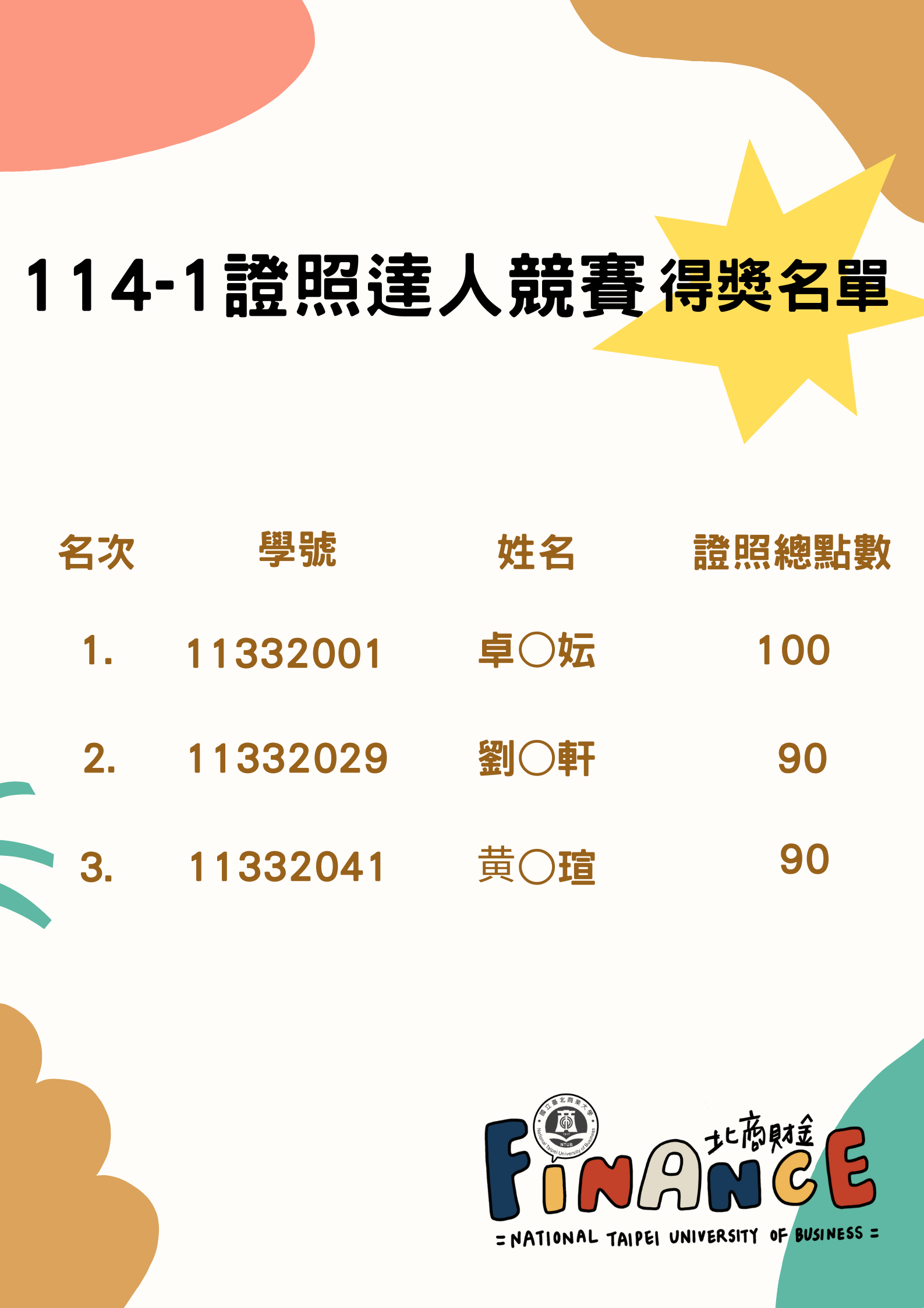 【競賽】114-1證照達人競賽 獲獎名單