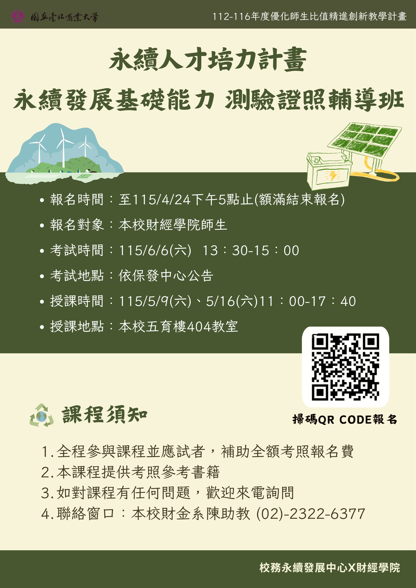 ◆報名時間:即日起至115/4/24下午5點止(額滿結束報名)https://forms.gle/iVsh3xHzYXHyuXVc9